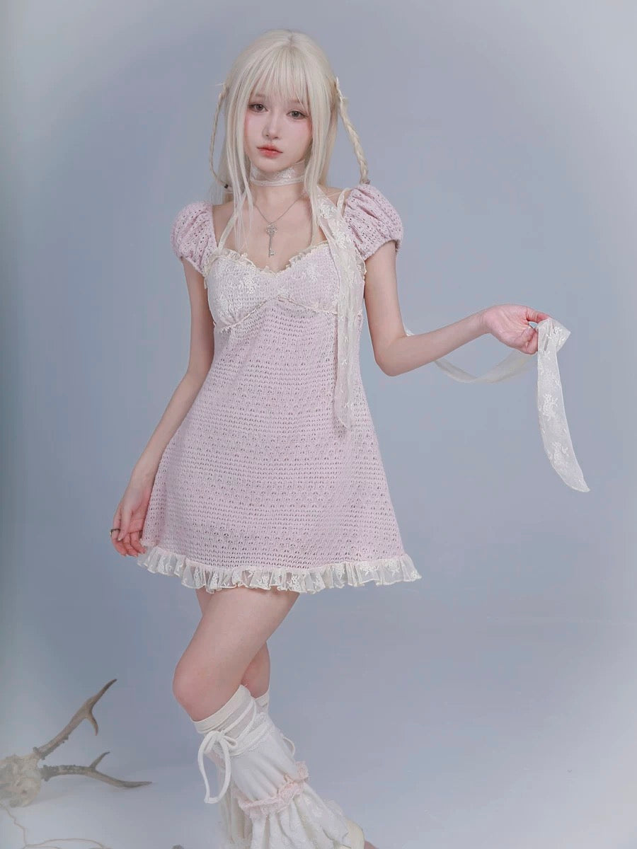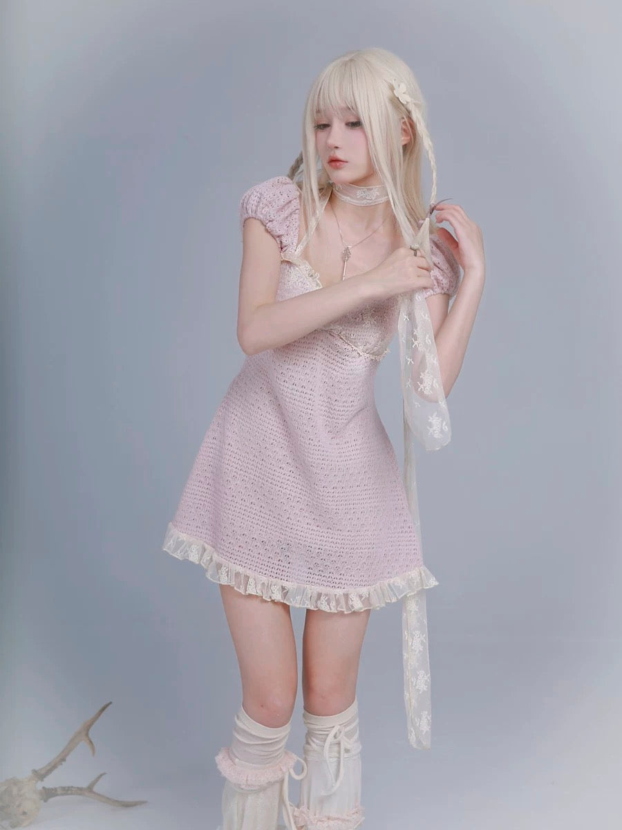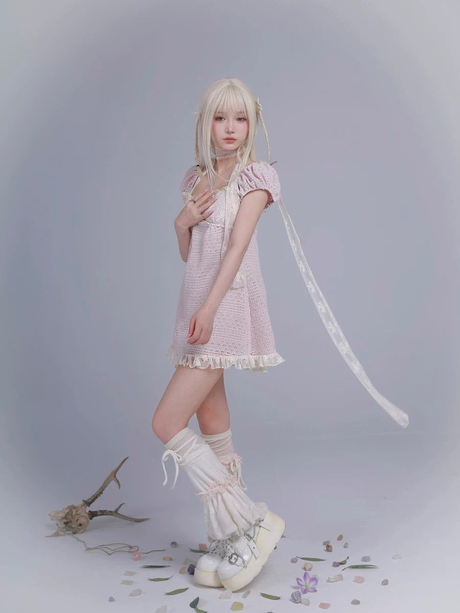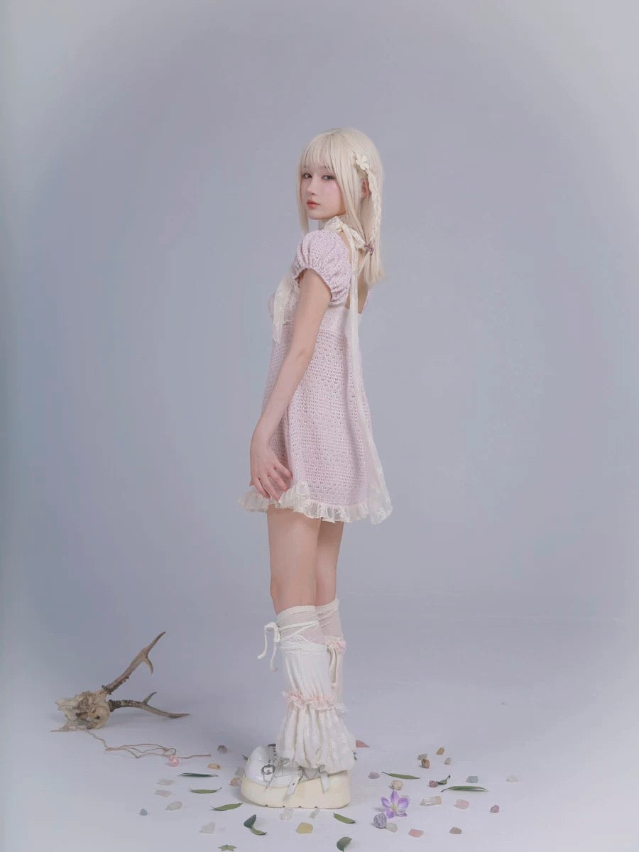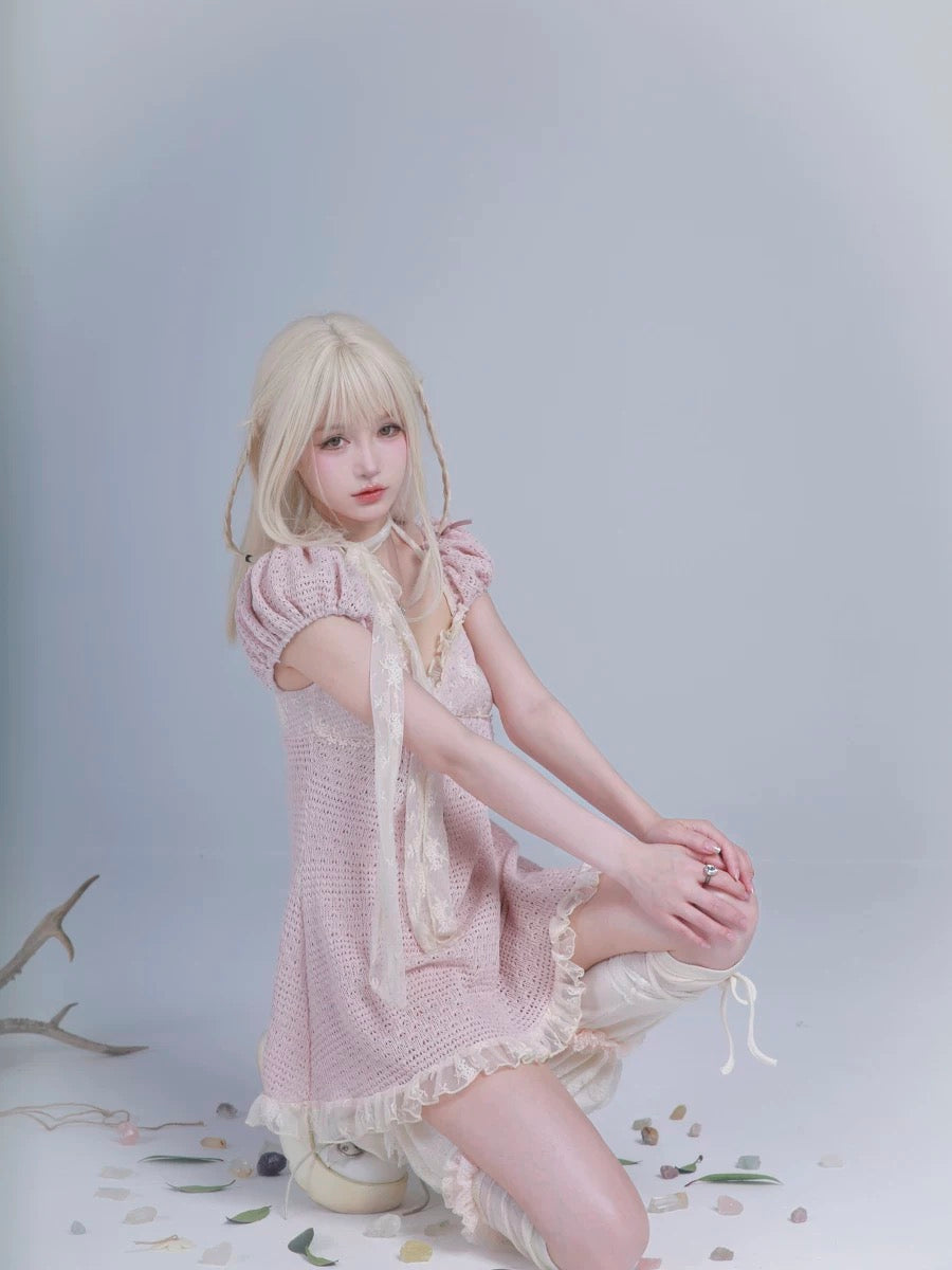 Introducing the Rose Island AW24 Elf Guardian - Sakura Fairy Mini Dress. Embrace the cute and girlish style of cottage core with our breathable, comfy fabric. The perfect addition to any wardrobe for a sweet and fairy core look.