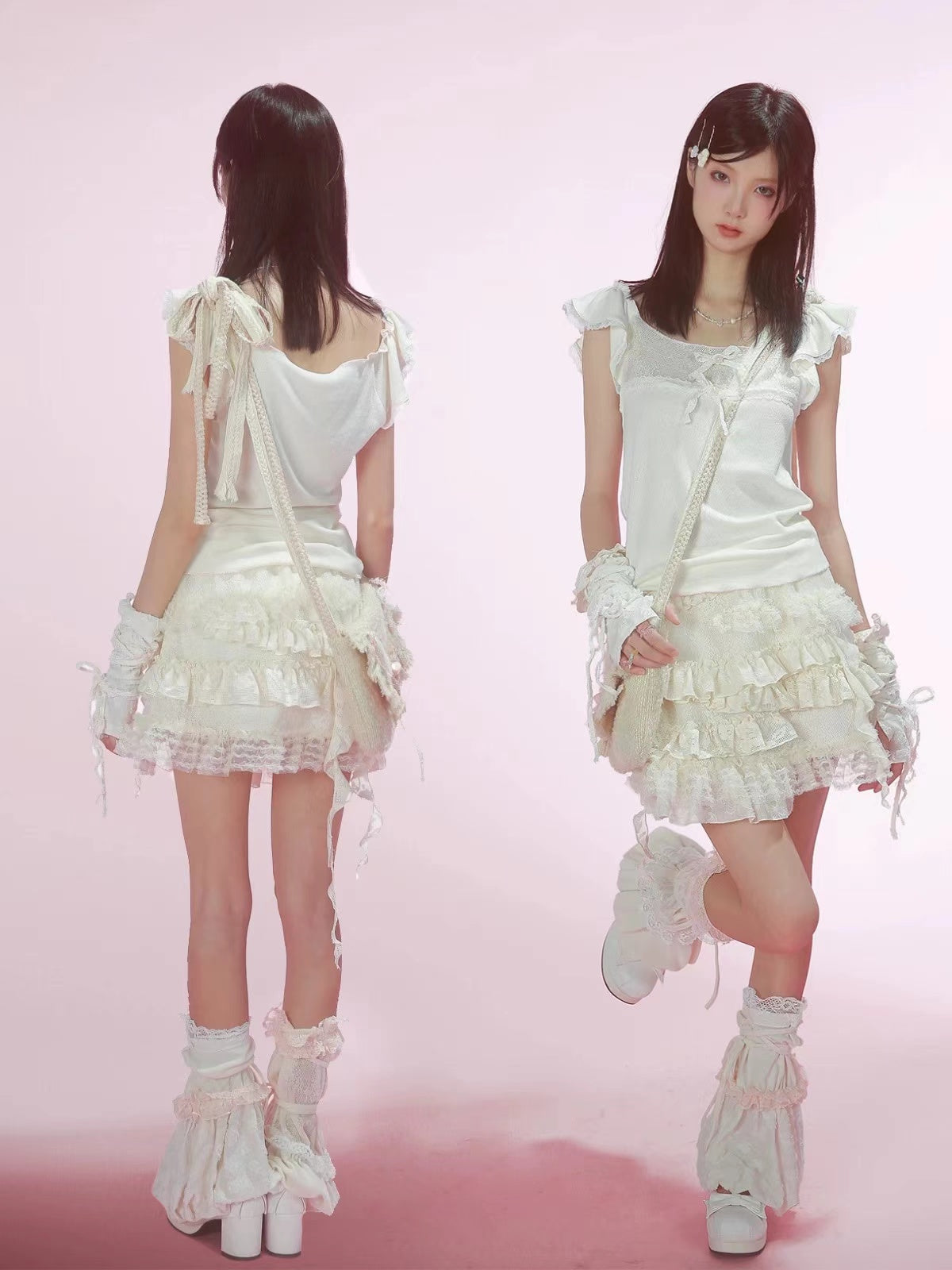 Model Size: height:167cm, bust:79cm, waist: 65cm, wearing size S.