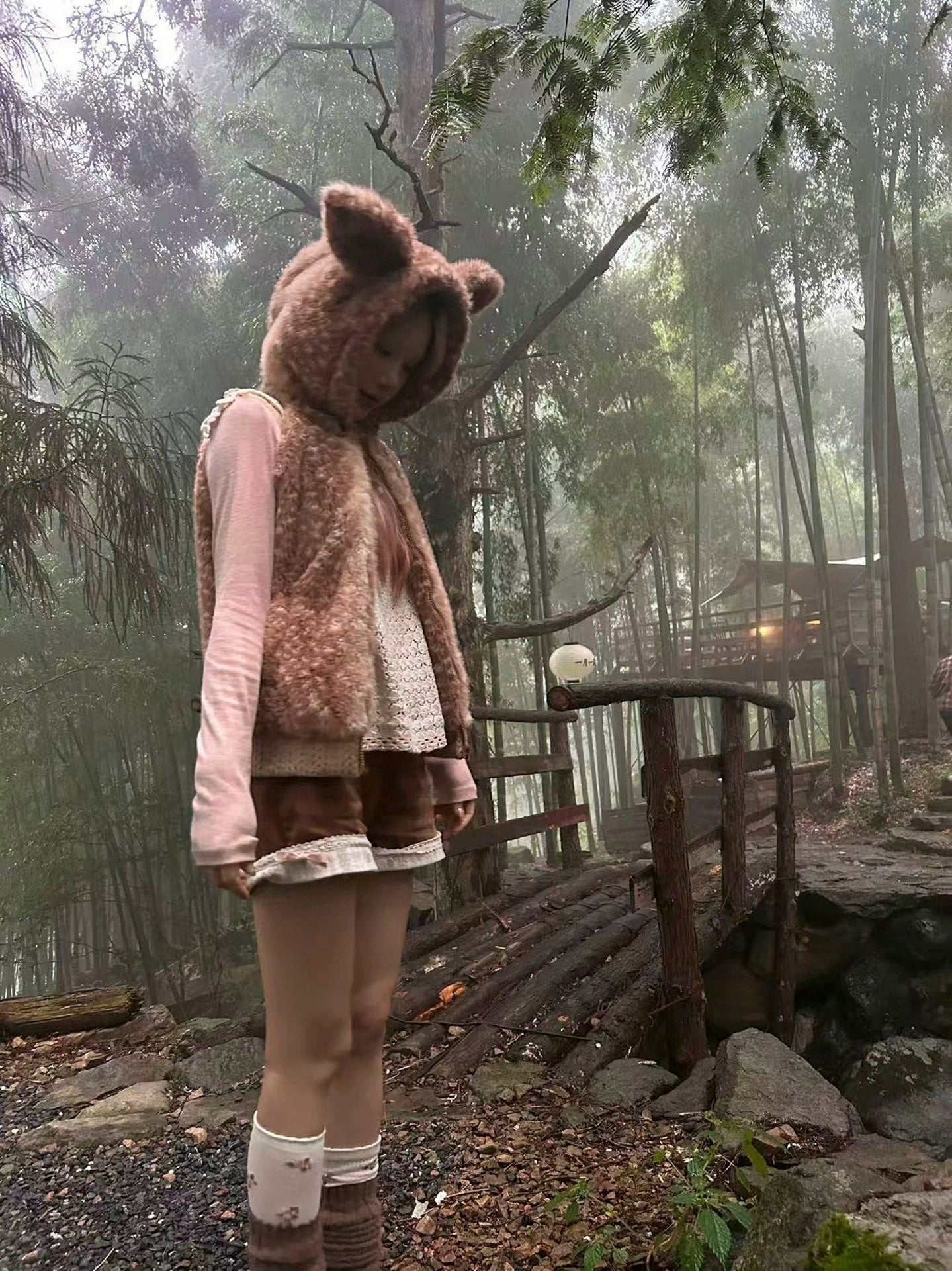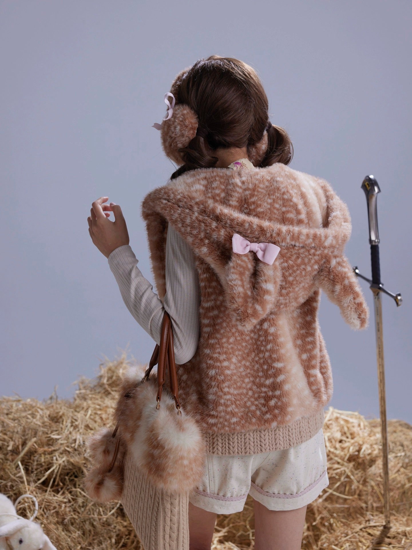 Rose Island Deer Vest, seasonally matched, slim-fit deer pattern fur vest
