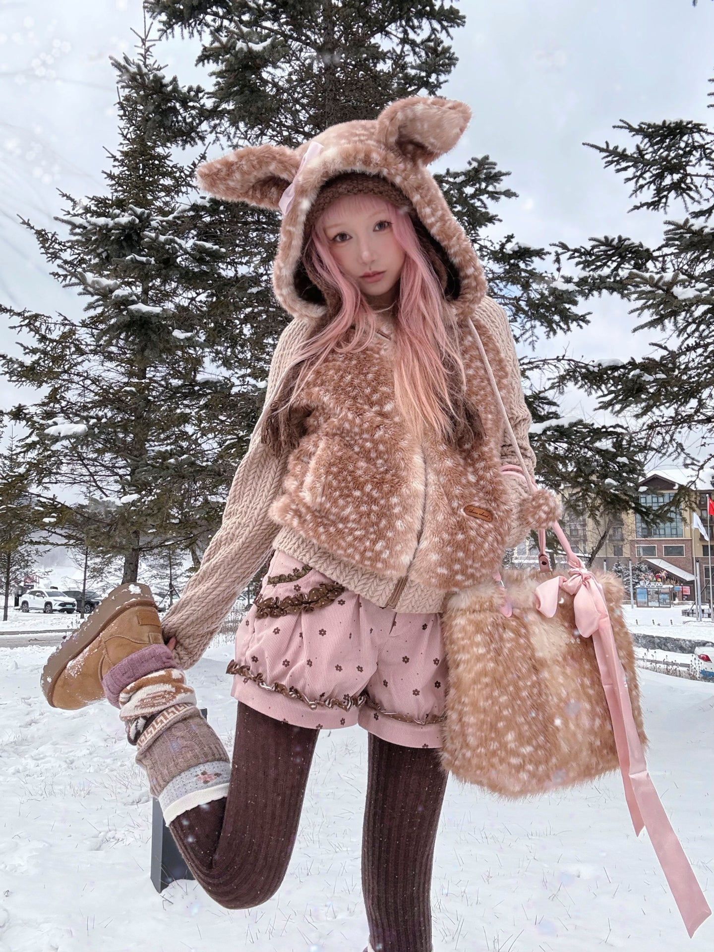 ROSE ISLAND Raspberry Thin Chocolate Corduroy Small Flower Shorts Polka Dot Ruched Pumpkin Pants