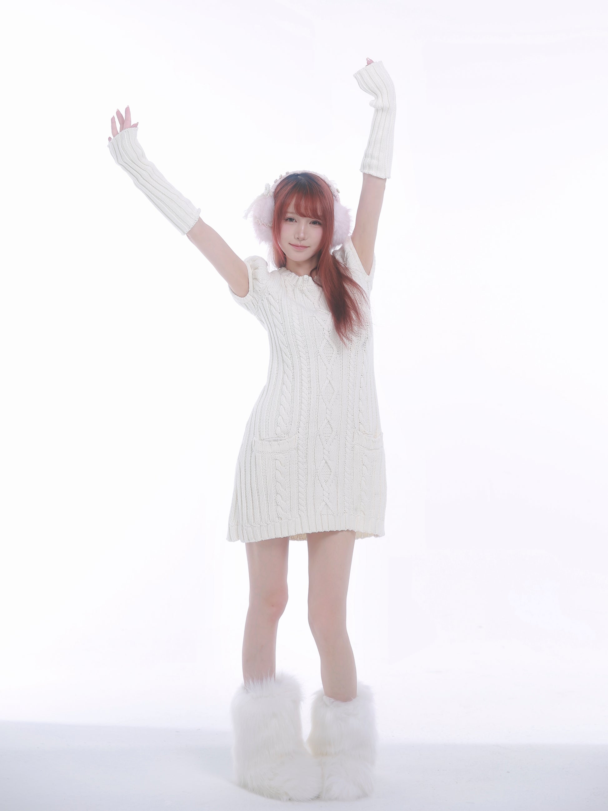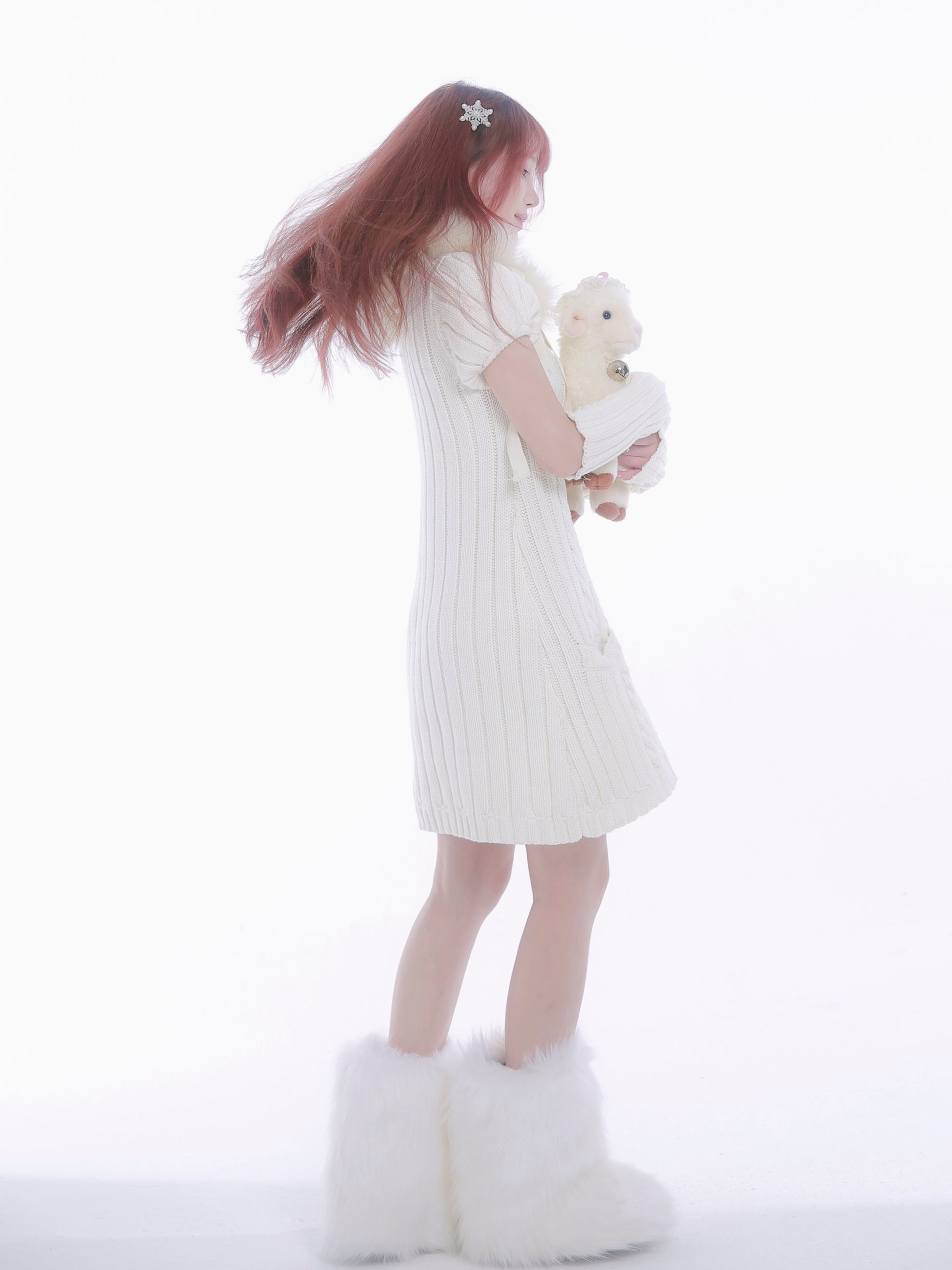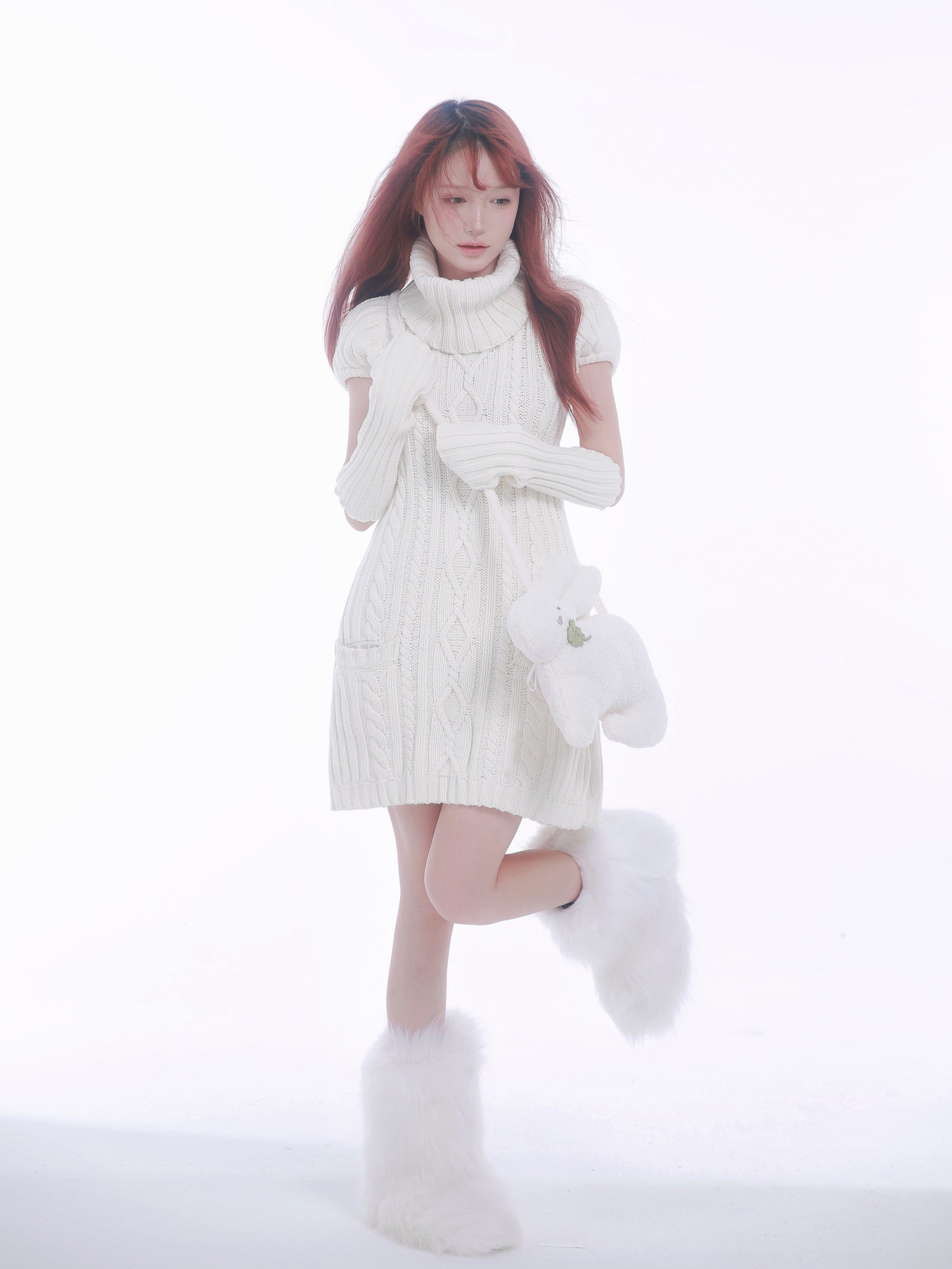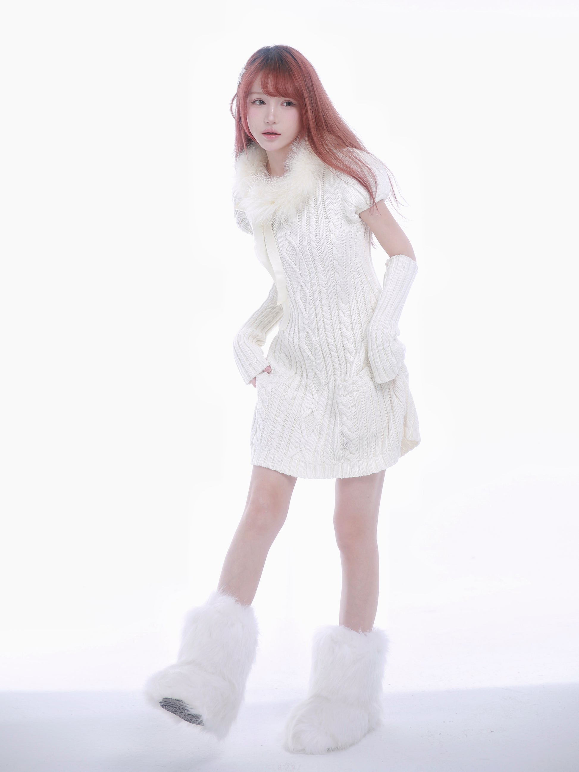 For White Valentine's Day, want a puffy sleeve with pockets, soft fur around the neck, can match high boots, warm and cute sweater dress ~ can change three ways to meet the fickle girl heart.