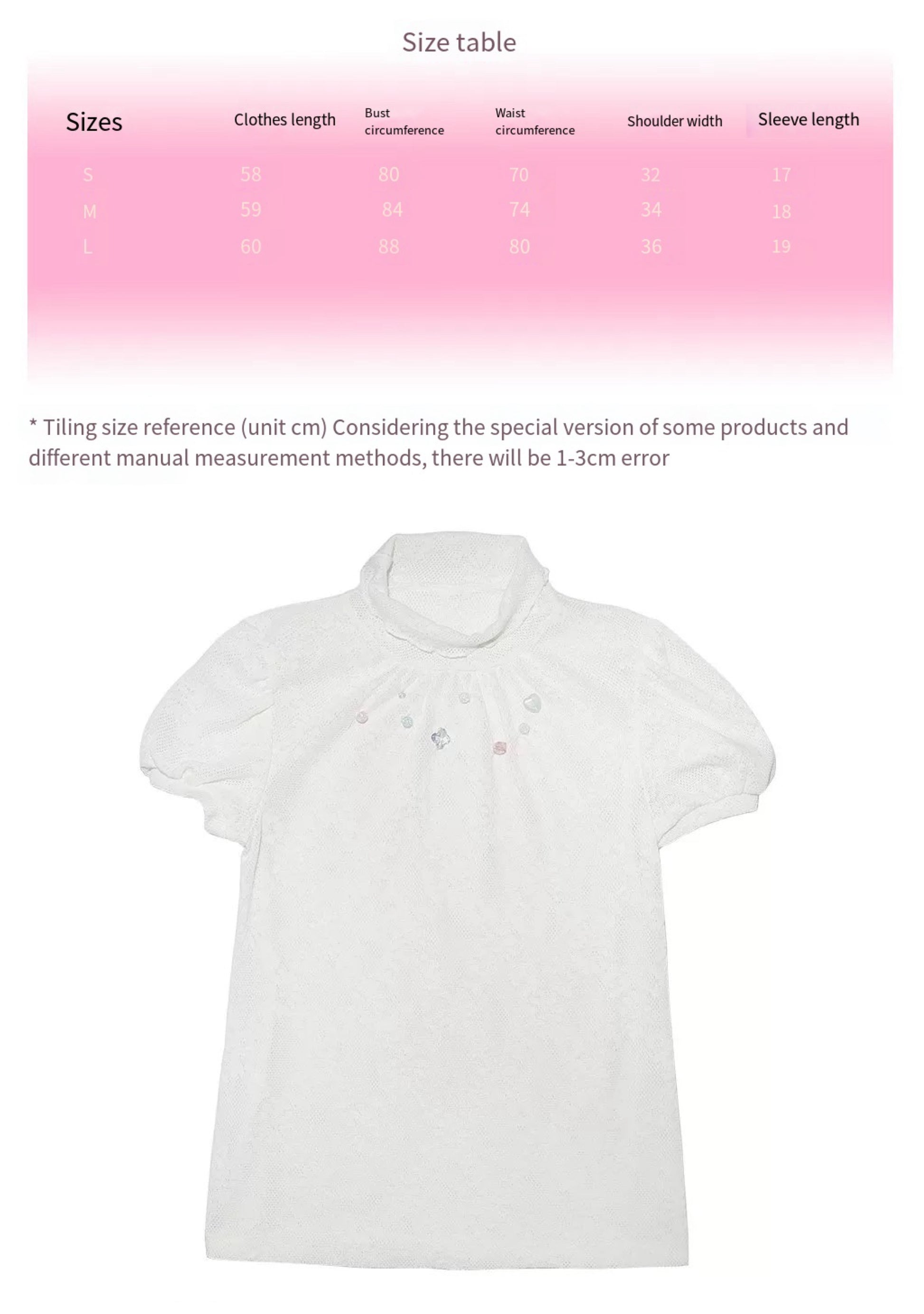 M: waist:74cm, length: 59cm,bust:84cm, Shoulder width:34cm